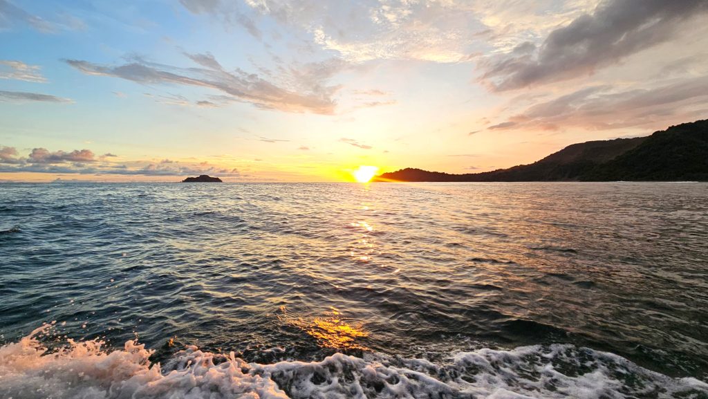 You will visit a beautiful white sand beach perfect for swimming while enjoying fresh fruits and drinks, after that you will enjoy some of the most spectacular sunsets over the mountains of the Peninsula.