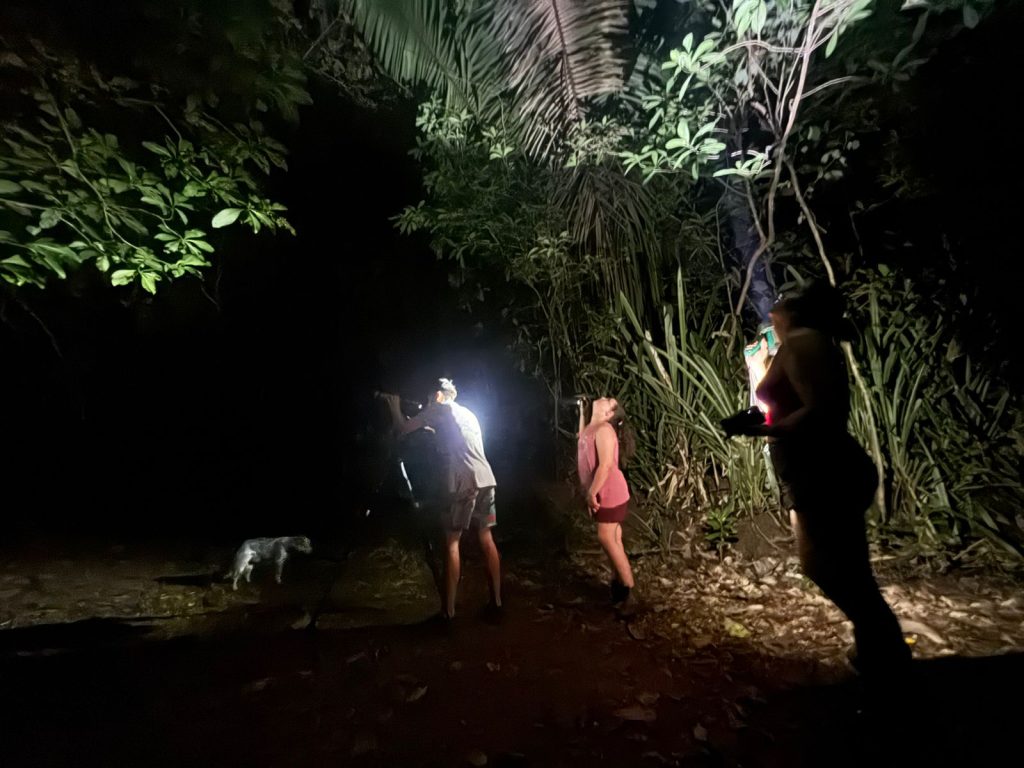 When the sun goes down, many animals seek for refuge, other nocturnal animals such as insects and amphibians begin their activity and take advantage of the night to go unnoticed in search of food using sounds to communicate, protect their territory and attract a mate. We take small groups of tourists into the forest at night with flashlights and a tour guide searching for nocturnal animals such as Kinkajous, Armadillos, Anteaters, Owls, Frogs and many other species that are active at night.